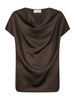 Annabeth Heavy Sateen Tee er en elegant og enkel satengtopp i en nydelig mørk brun farge. Den myke satengkvaliteten gir et luksuriøst preg, og vakre draperingsdetaljer foran fremhever silhuetten på en subtil og sofistikert måte.