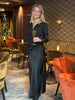 Lang skjørt med elastikk inni i livet. Skjørtet er skråskåret og har en veldig flatterende passform. Kvaliteten er en fin drapert sateng med steiner. Modellen er 176 cm og har på seg størrelse 36.