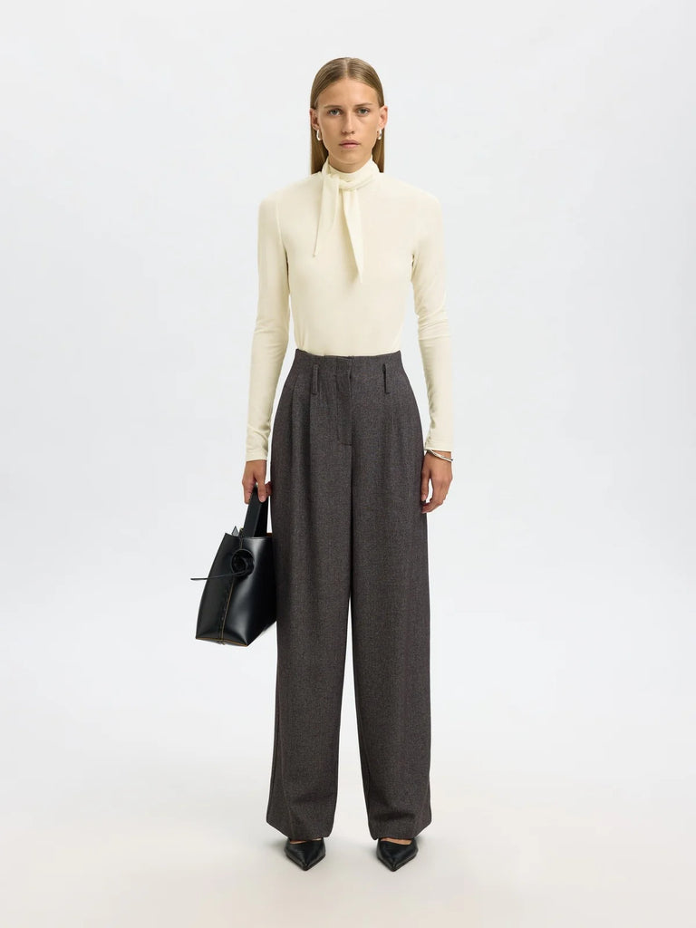 Lina Lano High Neck Top er en tidløs og komfortabel vintertopp med høy hals og sløyfedetalj. Toppens lange ermer har slim fit, og den elegante silhuetten følger kroppen for en flatterende passform. Perfekt alene eller under lag for kaldere dager.