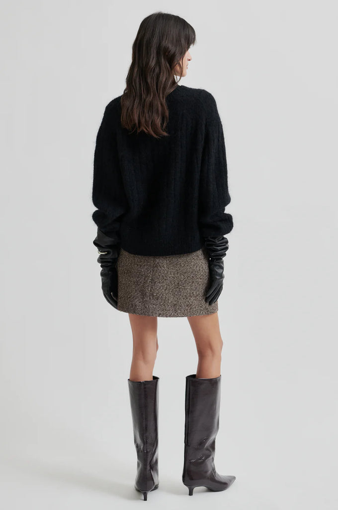 Brooky Knit V-Neck fra Second Female er en myk og ribbestrikket pullover i en behagelig mohair- og ullblanding med lett fluffy tekstur. Den har dyp V-hals, lange ermer med lave skuldre, og fine ribbekanter på hals, ermer og nederst. Den avslappede og litt ledige passformen gjør den komfortabel å bruke til hverdags.