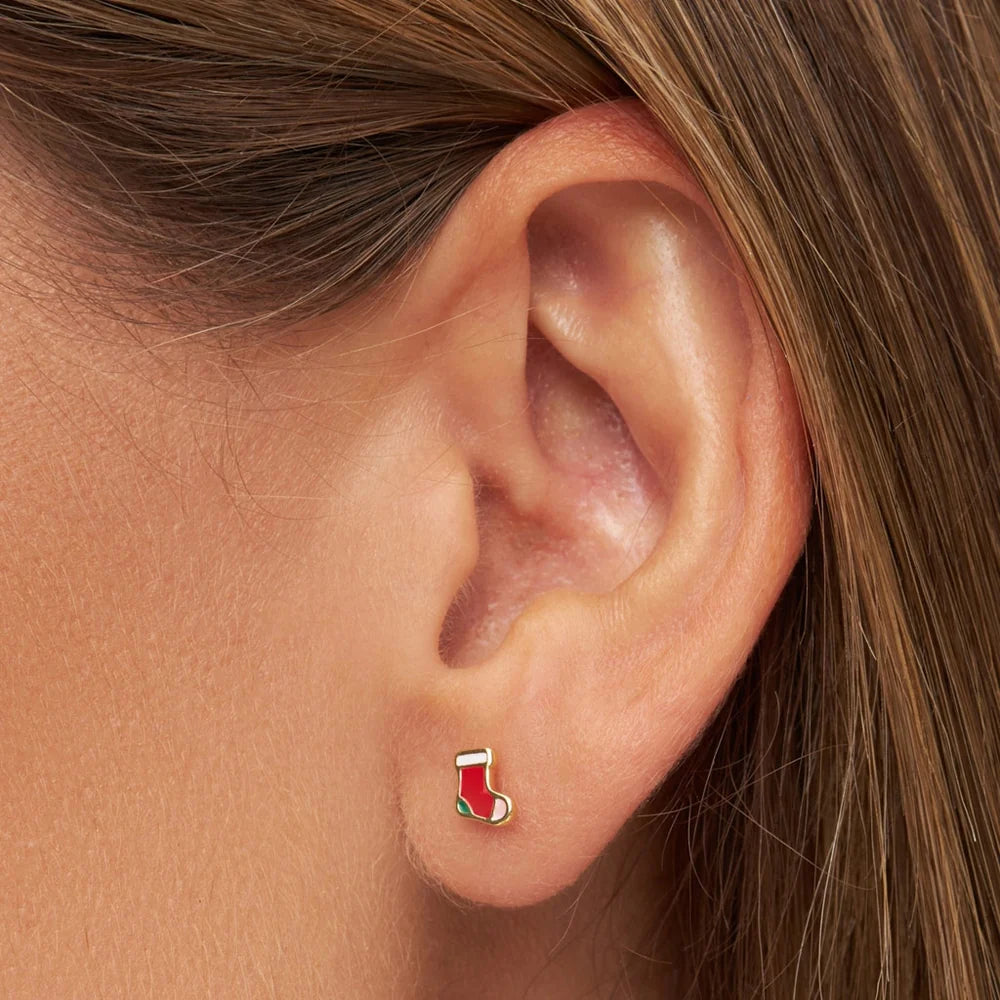 Øredobben forestiller en julestrømpe og er en perfekt juleøredobb.